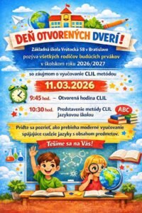 Vážení rodičia budúcich prvákov, prosíme, aby ste si osobne prišli prevziať rozhodnutia riaditeľa školy o prijatí/neprijatí dieťaťa do Základnej školy, Vrútocká 58, 821 04 Bratislava do 1. ročníka v školskom roku 2025/2026.